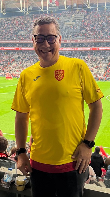 Fostul dottore VICTOR PONTA s-a dus la meciul de fotbal Turcia – România îmbrăcat cu tricourile ambelor echipe, unul peste altul.