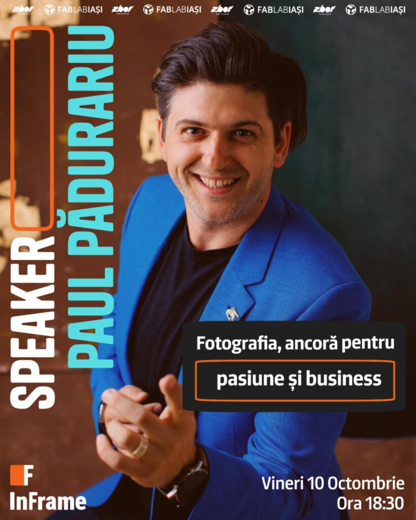 - Paul Pădurariu, fotograf de nuntă și studio din Iași, cu peste 11 ani de experiență și peste 200 de cupluri fotografiate. Supranumit „magicianul amintirilor minunate”, Paul va vorbi despre procesul deciziilor în fotografia de nuntă și cum acestea modelează rezultatul final: de la atragerea clienților până la transformarea pasiunii în business.