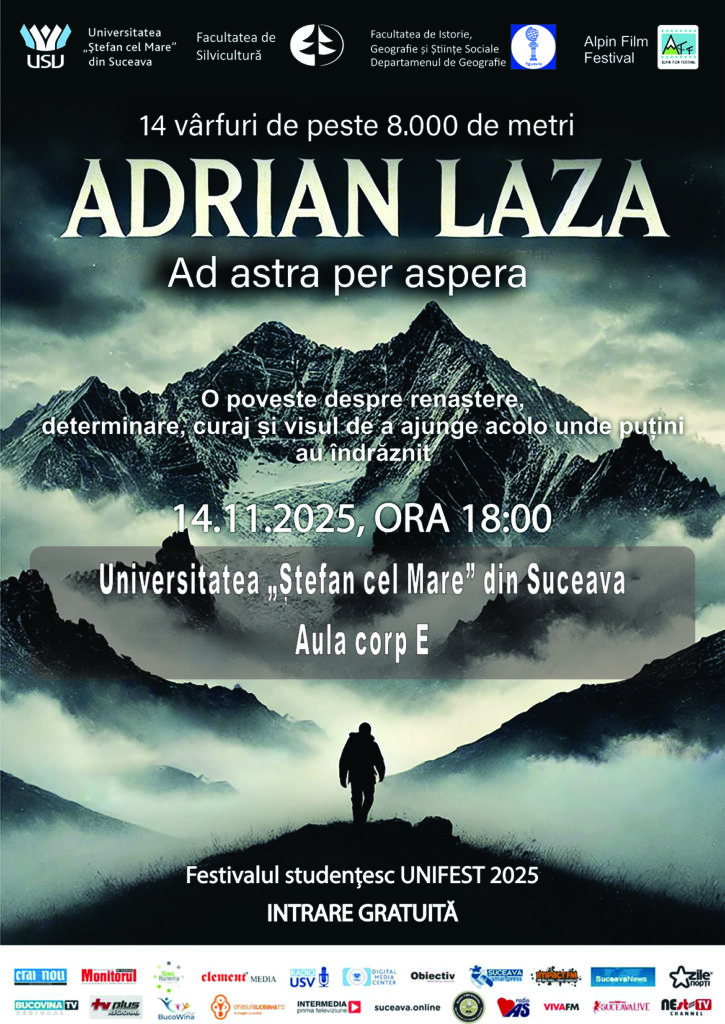 „Ad Astra per Aspera” – povestea alpinistului român Adrian Laza, proiectată la USV