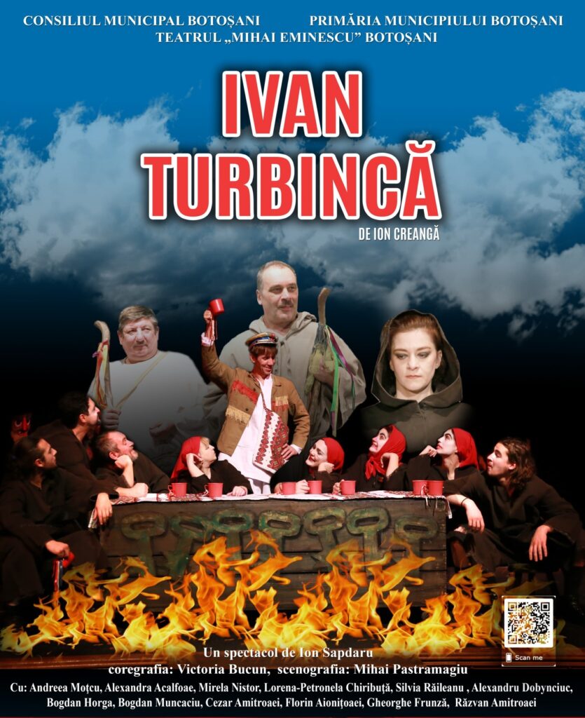 Astăzi, 1 octombrie, Teatrul „Mihai Eminescu” Botoșani marchează două decenii de la premiera unui spectacol extrem de îndrăgit– „Ivan Turbincă”- un spectacol de Ion Sapdaru,inspirat din opera lui Ion Creangă, o adaptare scenică plină de umor și farmec, care a cucerit publicul încă de la prima reprezentație.