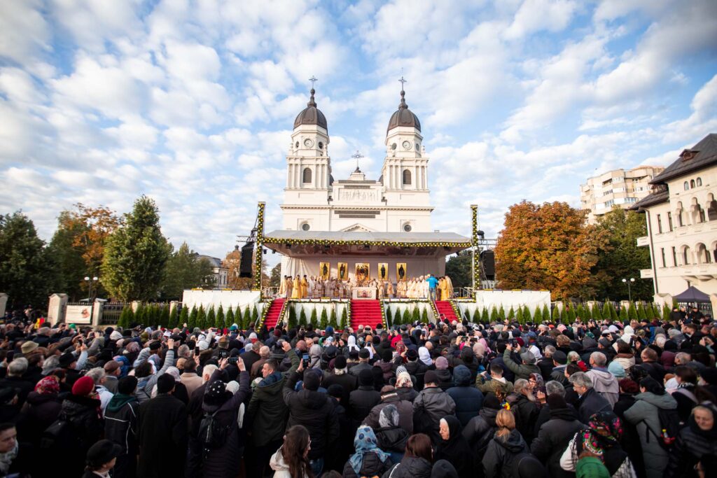 Dimineață a avut loc și Sfânta Liturghie oficiată pe podiumul special amplasat pe Pietonalul Ștefan cel Mare și Sfânt, chiar în dreptul altarului Catedralei Mitropolitane.
