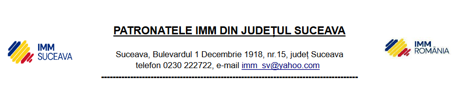 „Confirmarea participării se poate face la telefon 0230 222722, GSM 0740 136979, e-mail imm_sv@yahoo.com”, a precizat Liliana Agheorghicesei, Președinte al Patronatelor IMM din județul Suceava.