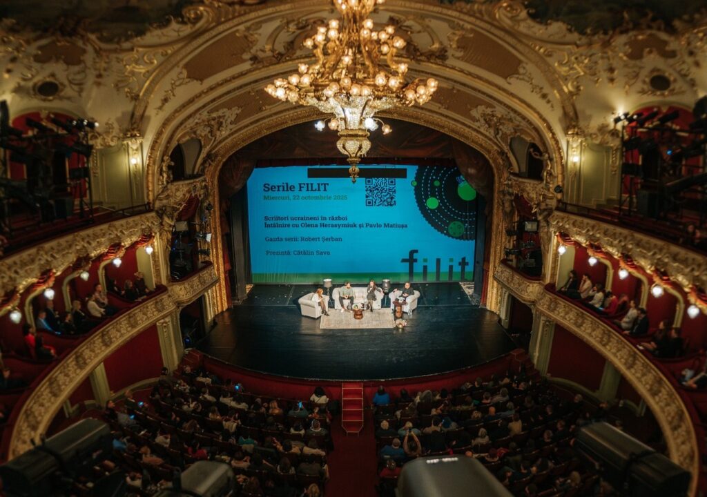 Prima seară de festival s-a încheiat la Teatrul Național „Vasile Alecsandri” din Iași cu un dialog despre război și trai în Ucraina cu doi din cei 12 sciitori ai volumului „Mecanisme de apărare. 12 scriitori ucraineni în război”, Olena Herasymiuk și Pavlo Matiușa. Dialogul a fost moderat de Robert Șerban.