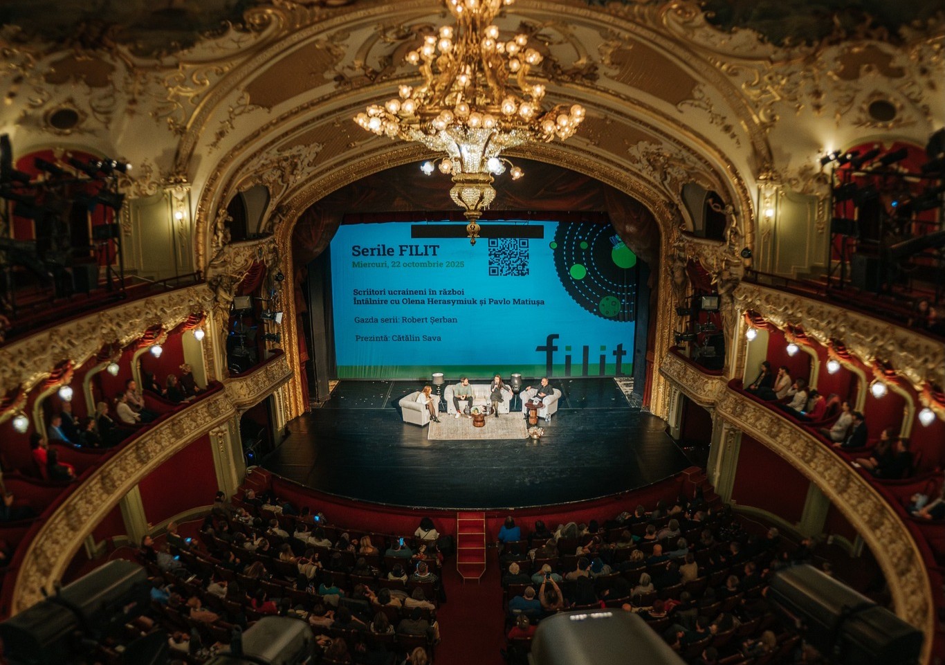 Prima seară de festival s-a încheiat la Teatrul Național „Vasile Alecsandri” din Iași cu un dialog despre război și trai în Ucraina cu doi din cei 12 sciitori ai volumului „Mecanisme de apărare. 12 scriitori ucraineni în război”, Olena Herasymiuk și Pavlo Matiușa. Dialogul a fost moderat de Robert Șerban.