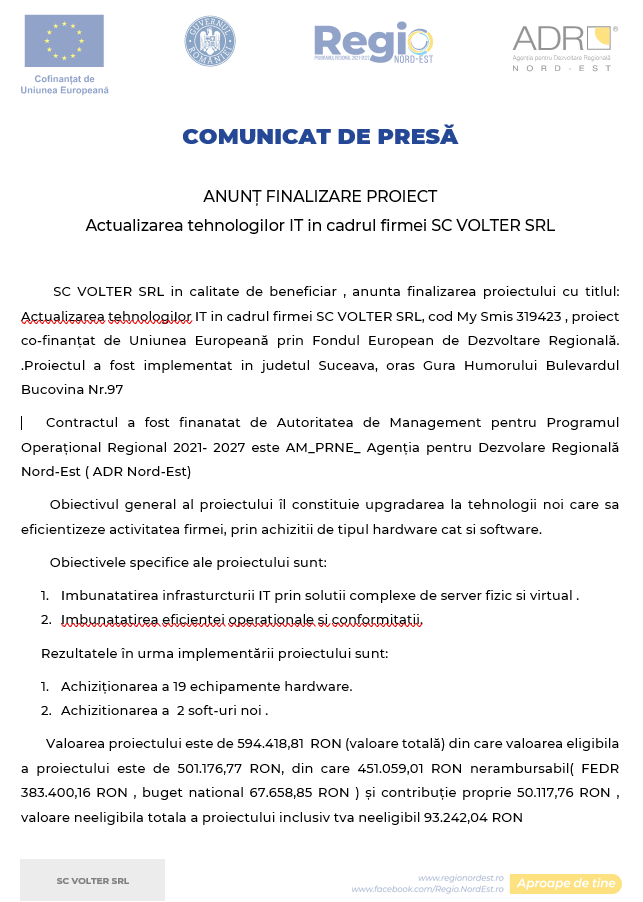 Finalizare Proiect Actualizarea tehnologiior IT în cadrul firmei SC VOLTER SRL