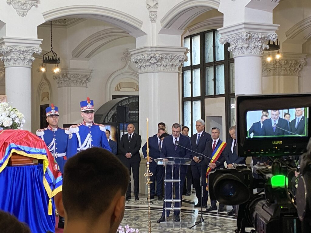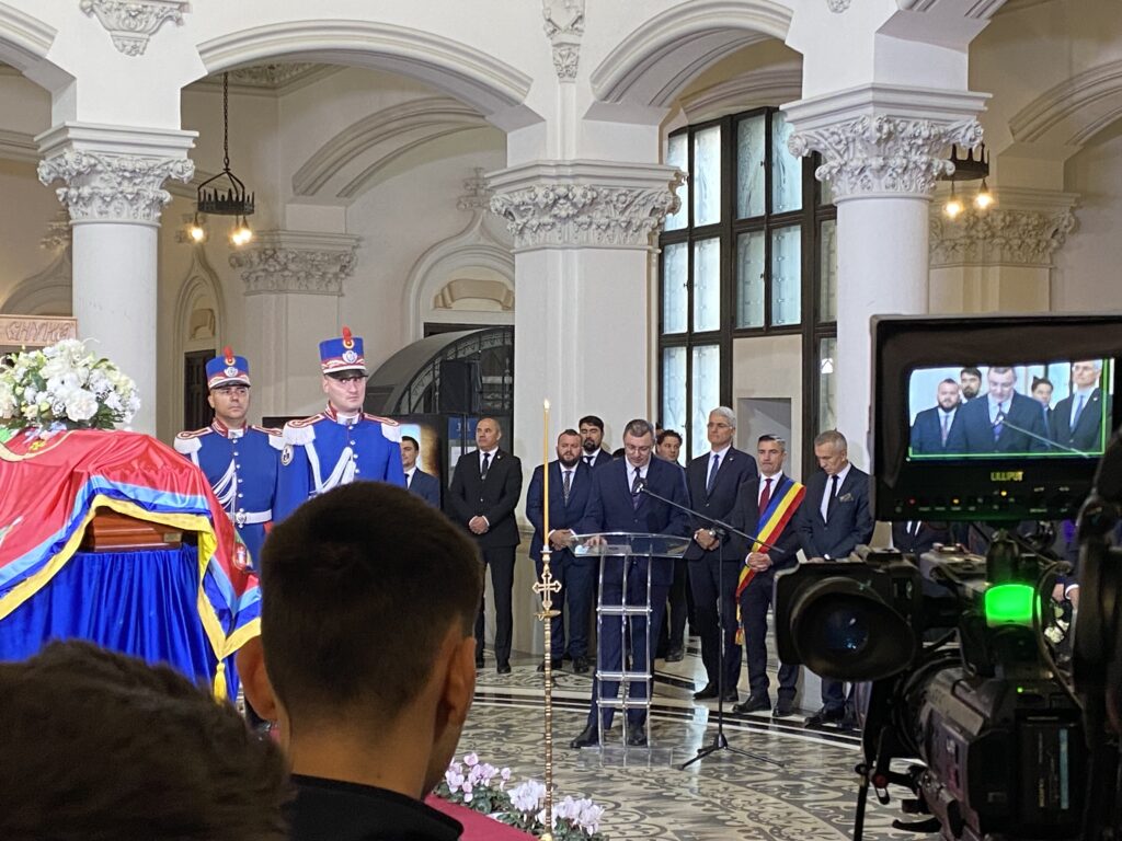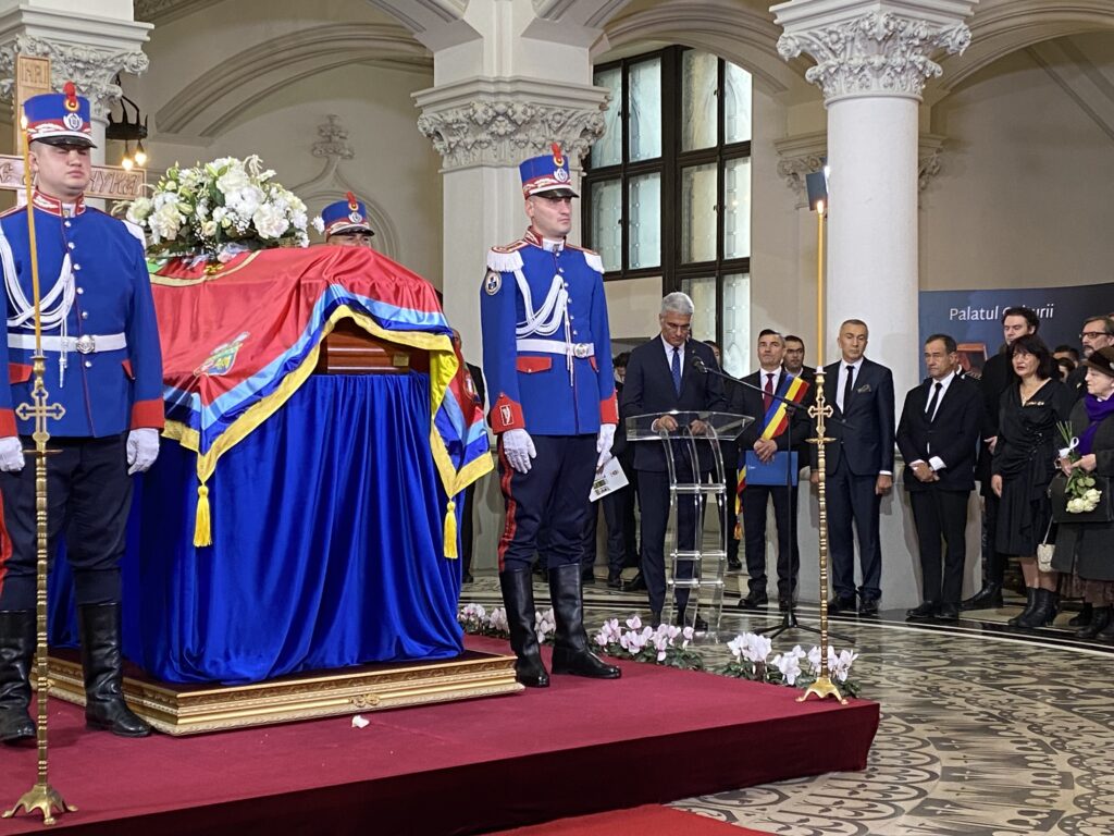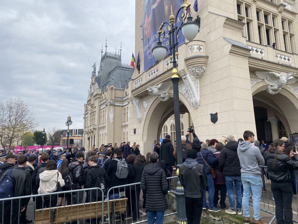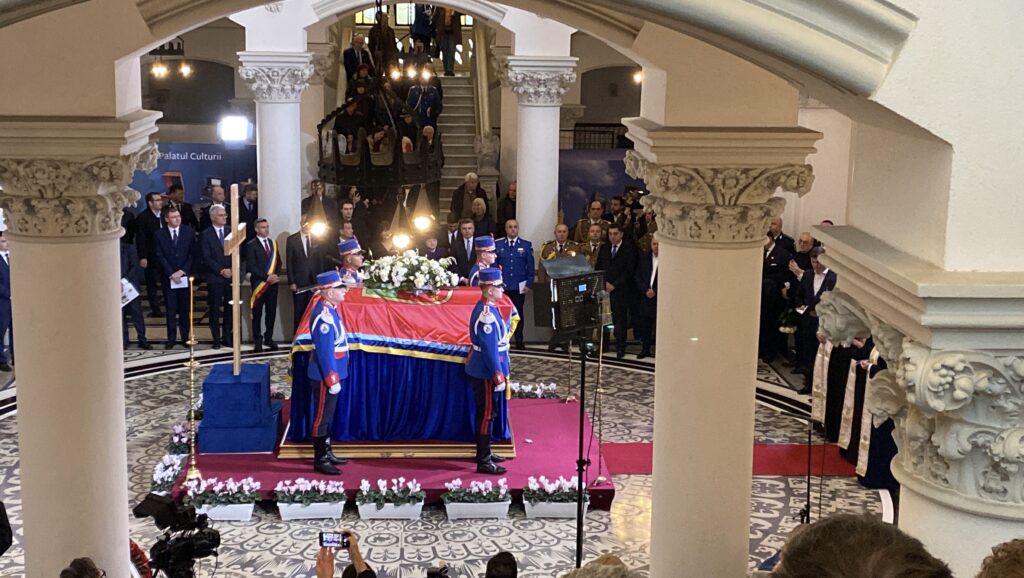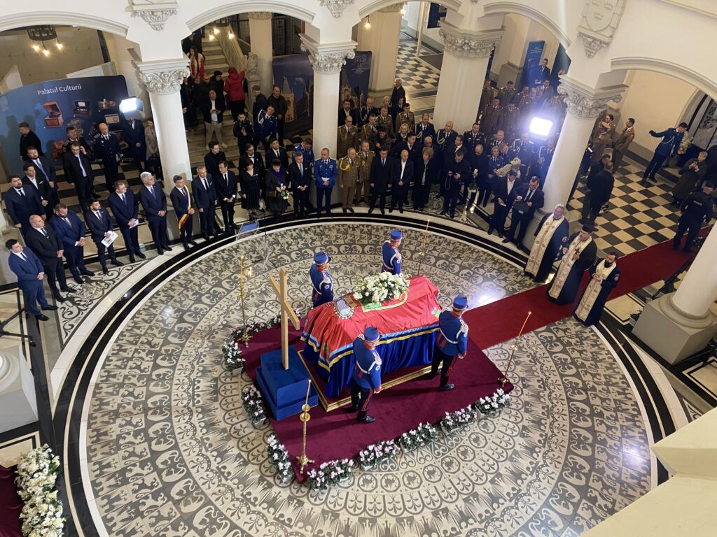 Ceremonia specială a început la ora 12:30, când sicriul a fost transferat pe un dric tras de cai, în fața Muzeului Unirii. Ulterior, cortegiul funerar a traversat centrul Iașului, spre Palatul Culturii, unde a ajuns la ora 13:00, fiind așteptat cu onoruri militare, dar și de sute de ieșeni curioși.