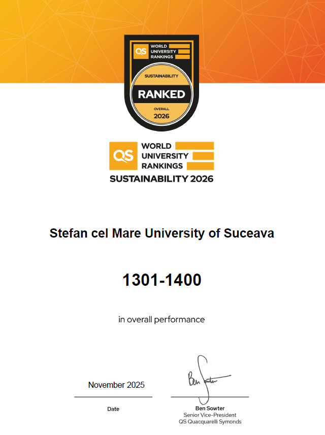 În această nouă ediție a clasamentului, Universitatea „Ștefan cel Mare” din Suceava (USV) se situează în intervalul 1301-1400 la nivel mondial și se menține pe poziția 7 la nivel național, consolidându-și angajamentul față de dezvoltarea durabilă.