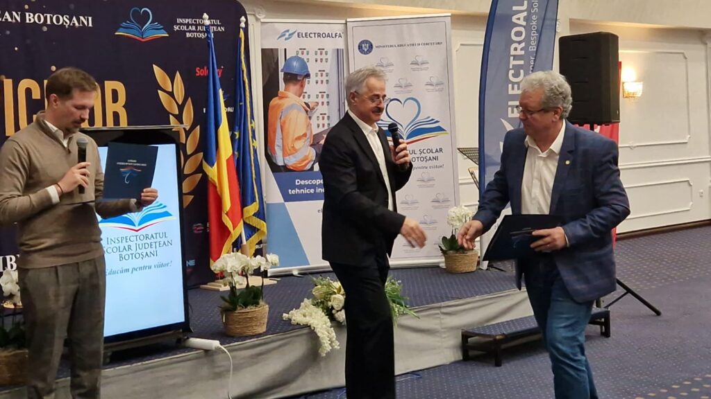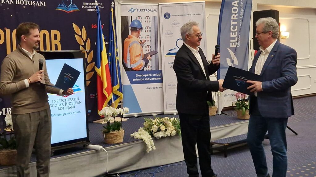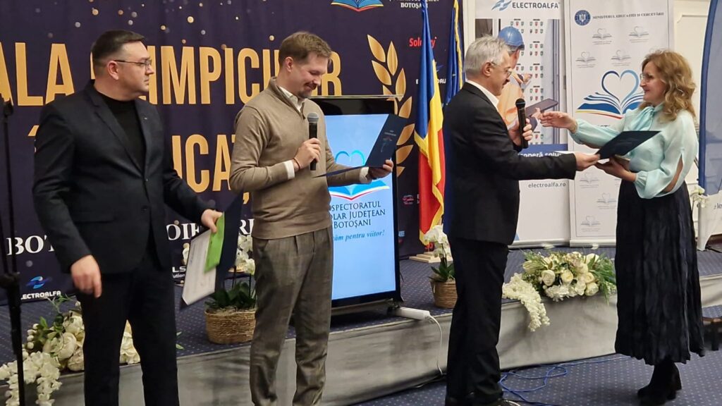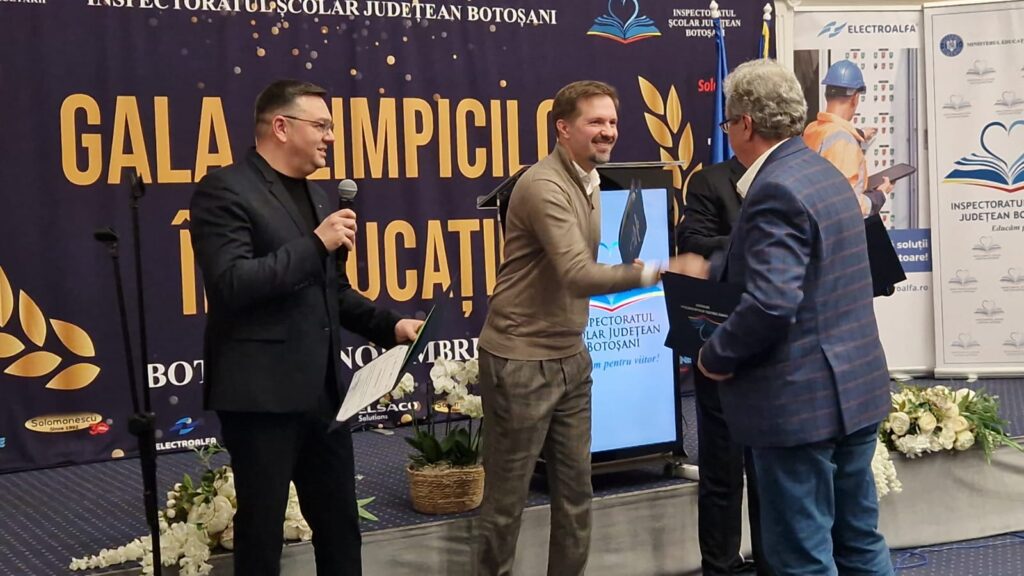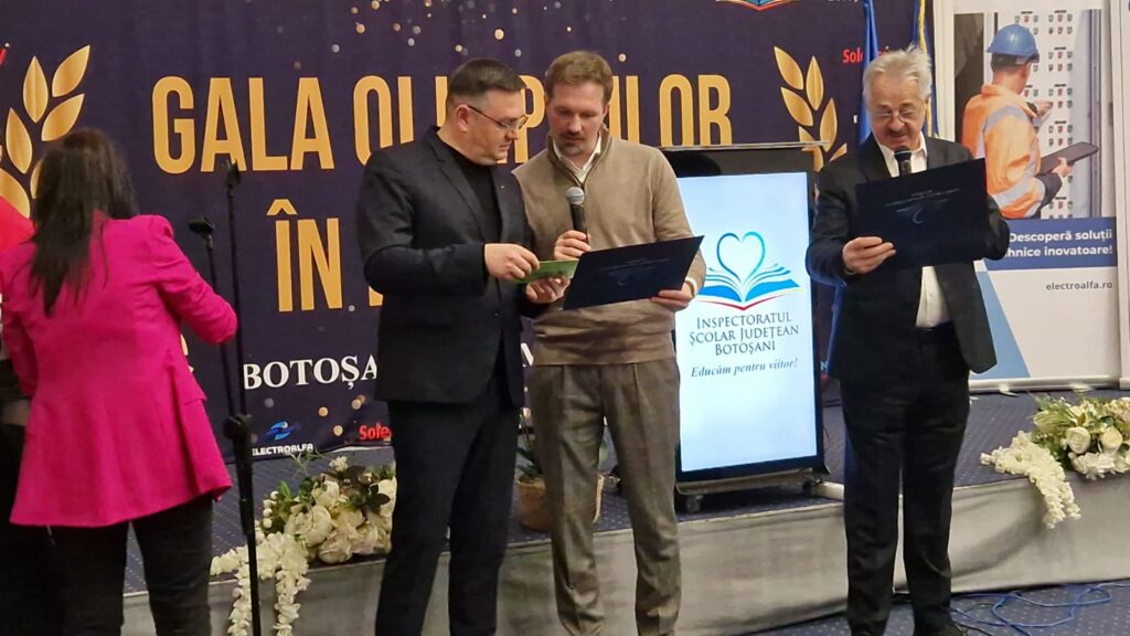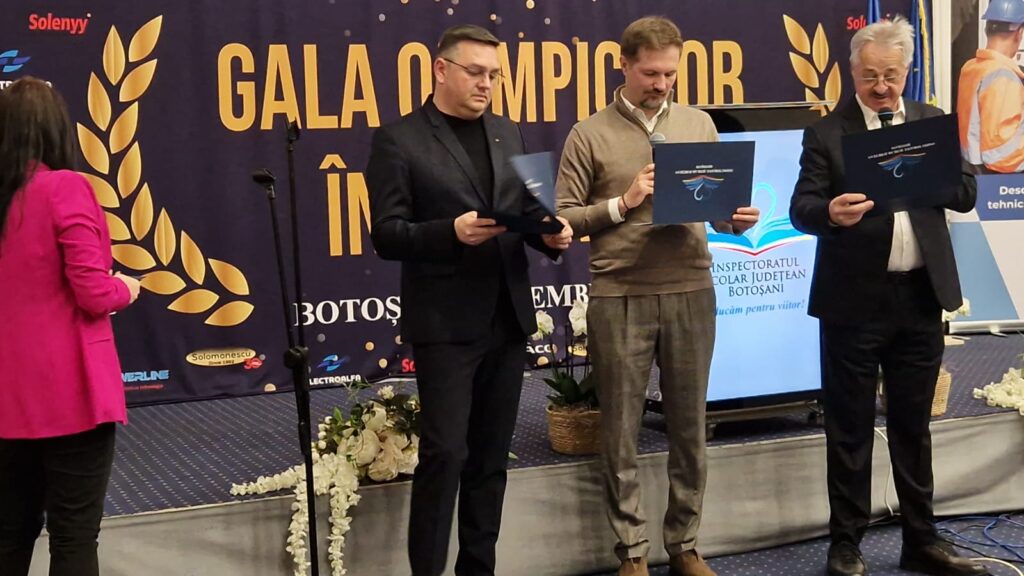 Inspectoratul Școlar Județean Botoșani a organizat astăzi, 20 noiembrie 2025, GALA OLIMPICILOR ÎN EDUCAȚIE, Ediția a IV-a, eveniment organizat în parteneriat cu mediul de afaceri din Botoșani, reprezentat de firmele ELSACO SRL, ELECTRO ALFA CM SRL, LACTO SOLOMONESCU SRL, POWERLINE SRL și SOLENYY SRL.