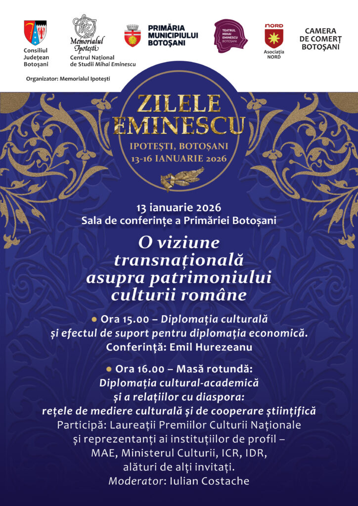 O conferință urmată de o masă rotundă – O viziune transnațională asupra patrimoniului culturii române – va avea loc, în aceeași zi, în sala de ședințe a Primăriei Botoșani. Emil Hurezeanu va susține, începând cu ora 15:00, conferința „Diplomația culturală și efectul de suport pentru diplomația economică”. După conferință, la masa rotundă (cu începere de la ora 16:00) – „Diplomația cultural-academică și a relațiilor cu diaspora: rețele de mediere culturală și de cooperare științifică” –, moderată de Iulian Costache, vor participa acad. Ion Pop, Matei Vișniec, Marin Cazacu, András István Demeter (Ministerul Culturii), Gheorghe Vlad Nistor (IDR), Liviu Jicman (ICR),  Ștefan Teișanu (CCC – Asociația Nord), alături de alți invitați.
