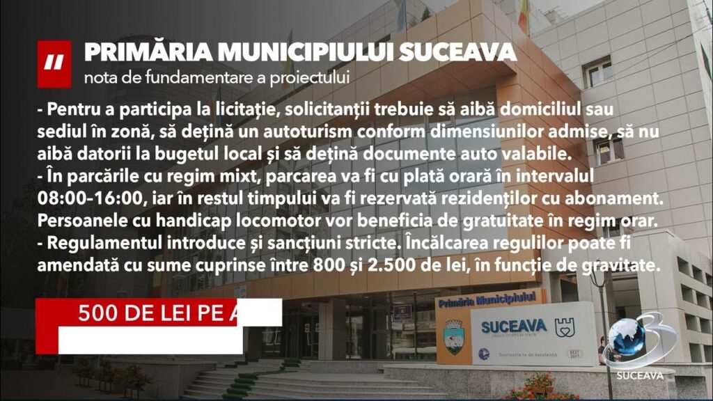 În prima etapă de licitație online vor participa doar rezidenții cu domiciliul în municipiul Suceava, iar în următoarea etapă și cei cu viză de flotant sau proprietarii unui al doilea vehicul.