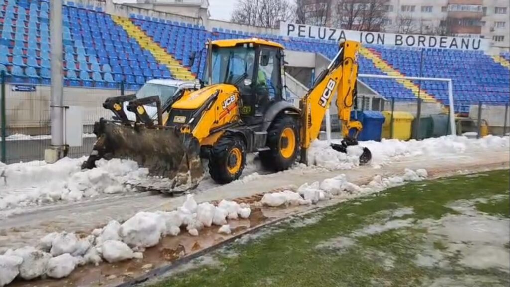 Personalul DSA a intervenit la degajarea zăpezii de pe suprafața de joc, piste, tribune și căile de acces, în contextul partidei dintre echipa locală de fotbal FC Botoșani, în calitate de gazdă și Oțelul Galați, programată pentru 2 februarie, de la ora 20:00.