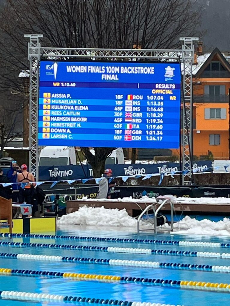 Este vorba despre AISSIA PRISECARIU, care a câștigat medalia de aur în proba de 100 m spate, cu un nou record mondial – 1 minut 7 secunde 4 sutimi.