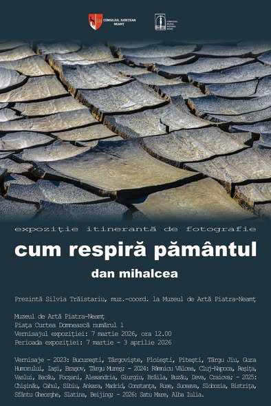 Muzeul de Artă Piatra Neamț va găzdui vernisajul expoziției „Cum respiră pământul”, sâmbătă – 7 martie, la ora 12.