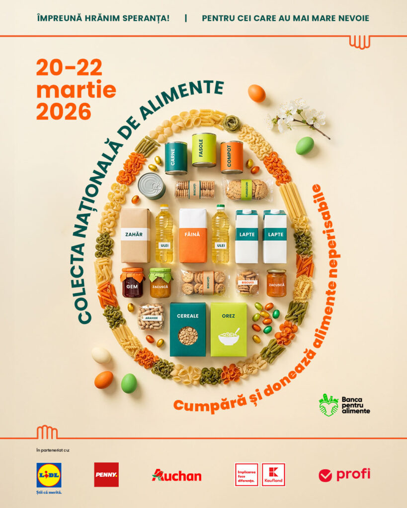 Federația Băncilor pentru Alimente din România (FBAR) invită publicul să se alăture ediției de primăvară a Colectei Naționale de Alimente, unul dintre cele mai mari exerciții de solidaritate la nivel național în sprijinul comunităților vulnerabile.