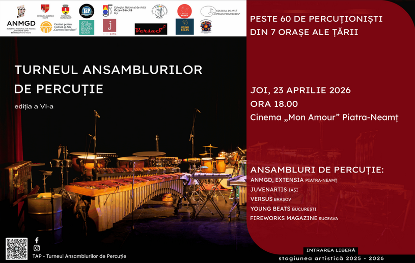 Turneul Ansamblurilor de Percuție revine la Piatra Neamț, pe 23 aprilie.