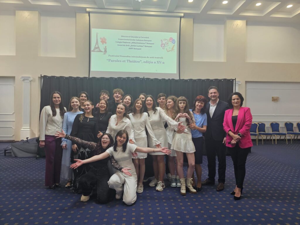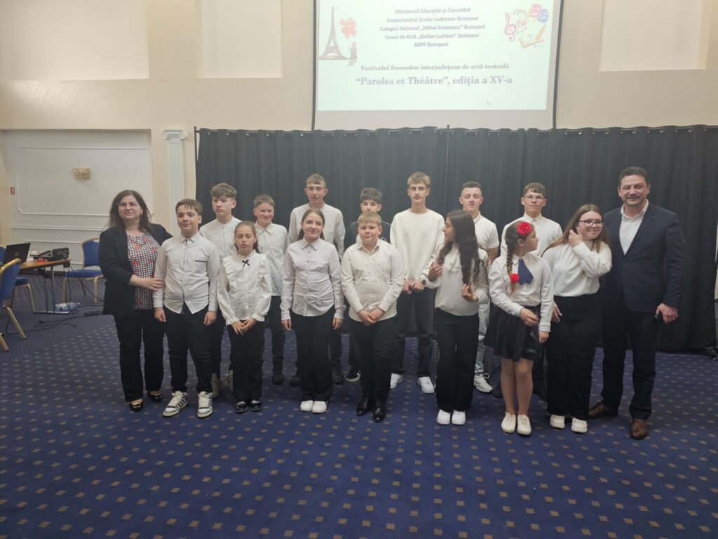 Sâmbătă, 25 aprilie 2026, elevii francofoni botoșăneni au trăit momente de entuziasm și efervescență cu prilejul celei de-a XV-a ediții a Festivalului francofon interjudețean de artă teatrală „Paroles et théâtre”. Evenimentul s-a desfășurat în sala „Mihai Eminescu” a Hotelului Rapsodia din Botoșani și se înscrie în rândul activităților patronate de Asociația Română a Profesorilor de Limba Franceză – filiala Botoșani.